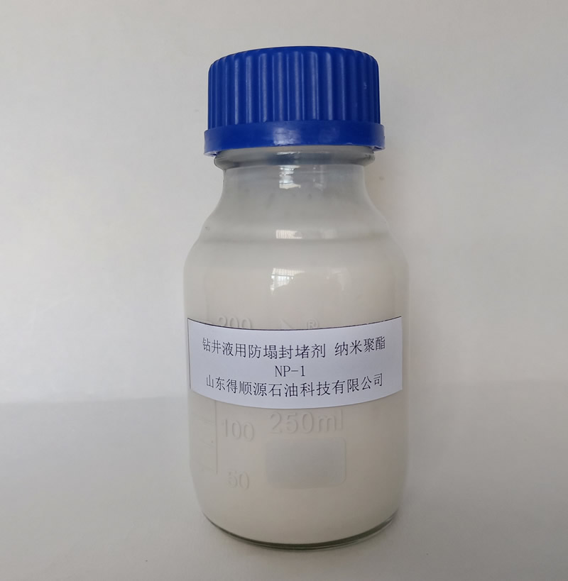 鉆井液用納米聚酯NP-1是由烷基磺酸鹽、烷基酯、交聯劑等聚合成的多元聚合物,通過特種工藝加工而成的納米級封堵材料。